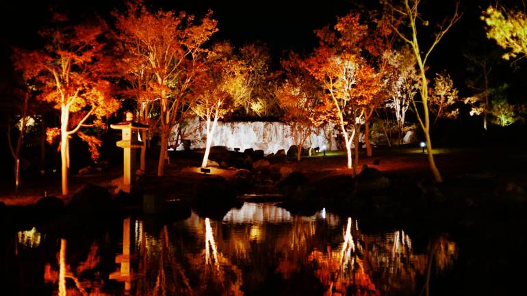新たに整えられた庭園で感じる季節の境界「夜の庭園、幻想の灯り」